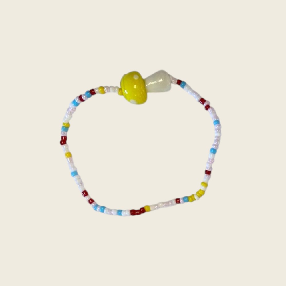 Geliefert wird ein Armband mit gelbem Pilz, so wie auf dem Hauptfoto abgebildet.