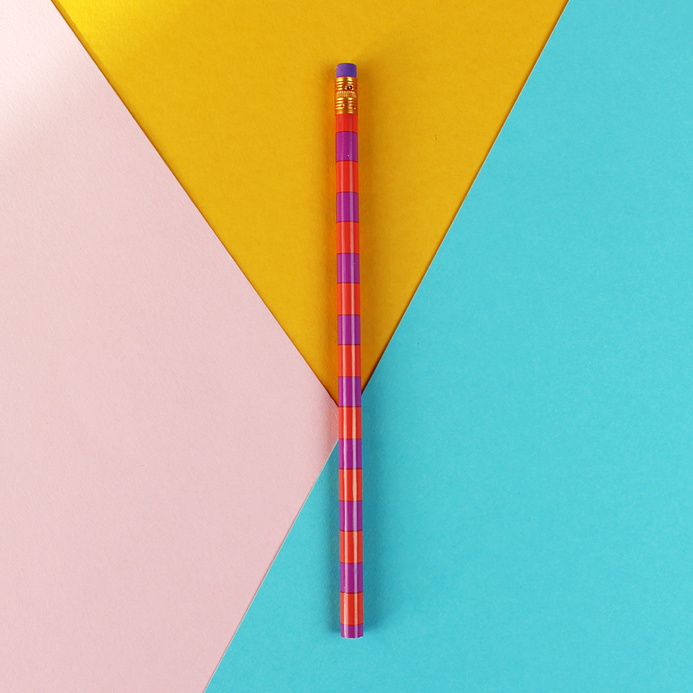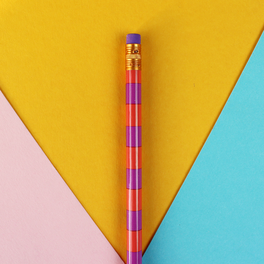 Bleistift Stripes koralle-lila, mit Aluminium-Hülle orange, Radiergummi flieder, 18,7cm