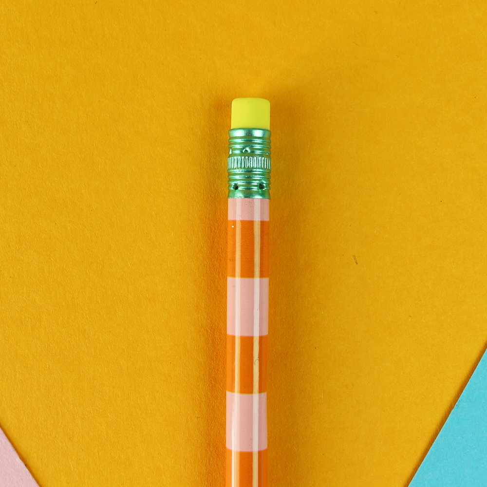 Bleistift Stripes rosa-orange, mit Aluminium-Hülle mint, Radiergummi gelb, 18,7cm