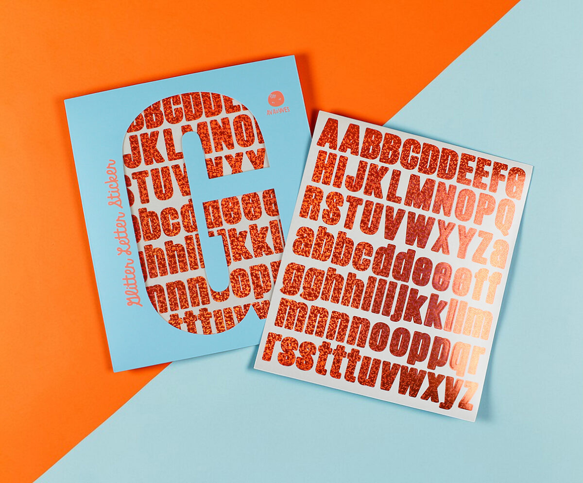 • 1 Buchstaben-Stickerbogen mit alphabetischen Zeichen