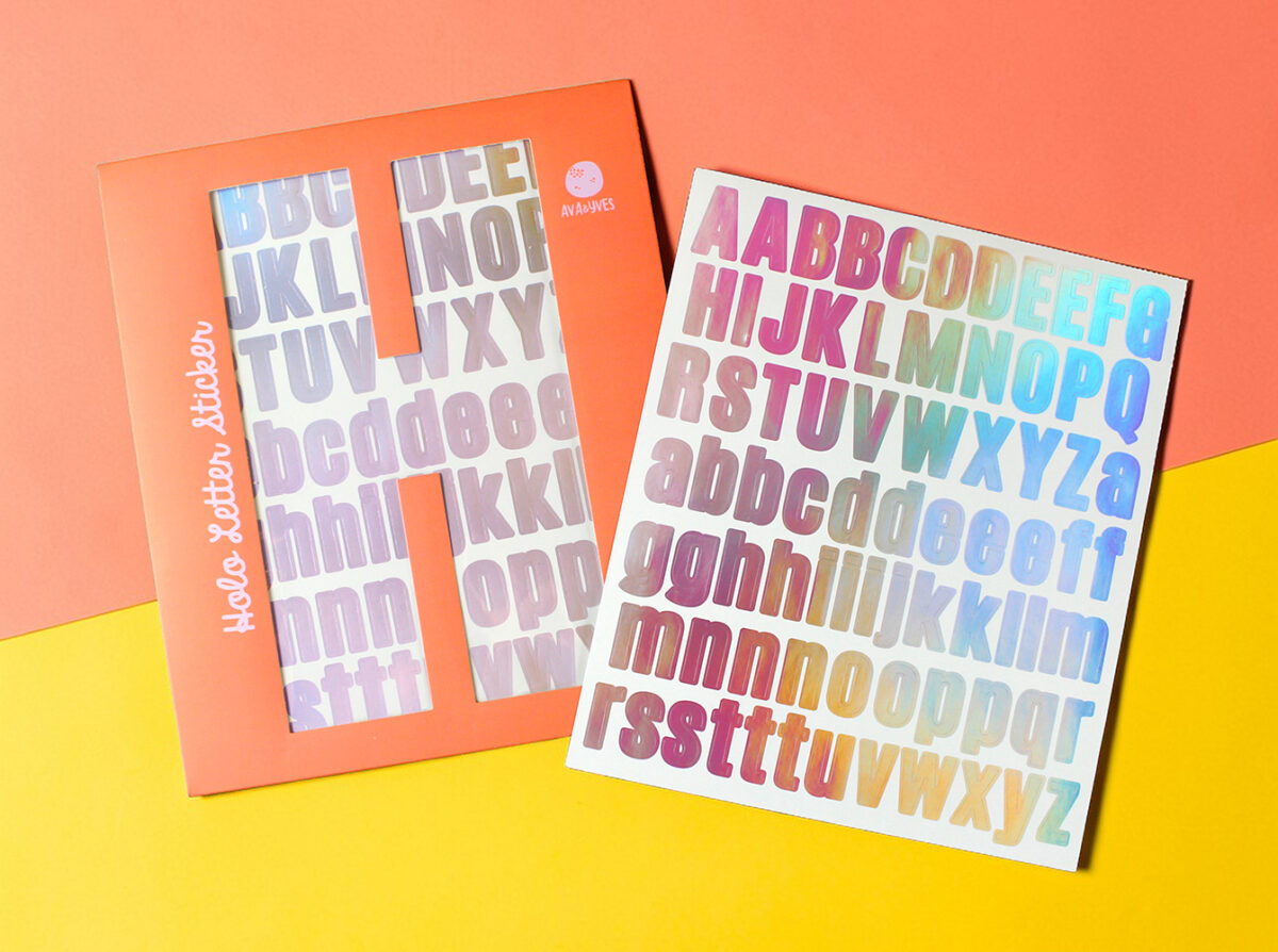 Buchstaben-Sticker mit Holo-Effekt, flieder