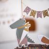 Eine Girlande mit kleinen Schultüten ist an zwei Papierhalmen befestigt. Die Papierhalme sowie den „Schulkind“ Piekser einfach in den Kuchen stecken und schon ist der Kuchen toll dekoriert.