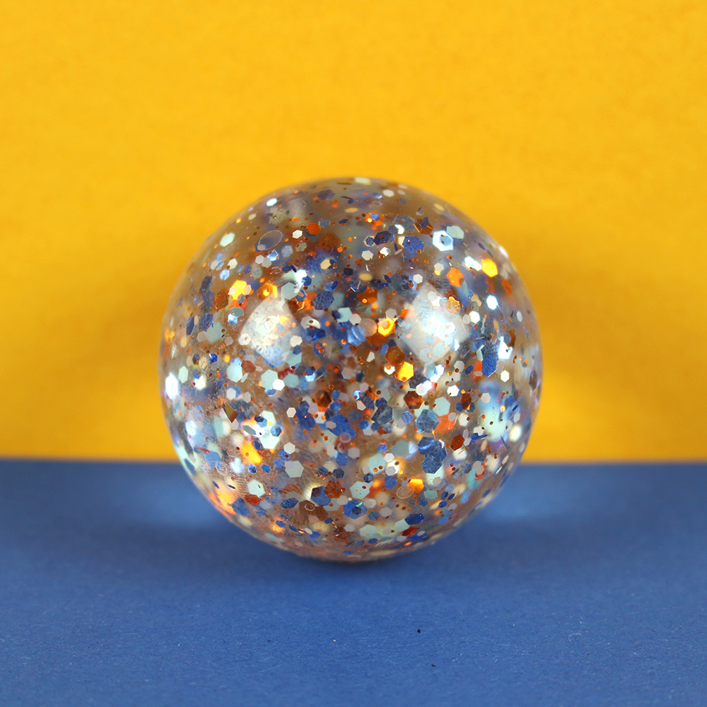 Flummi mit Konfetti, blau/kupfer, 49mm