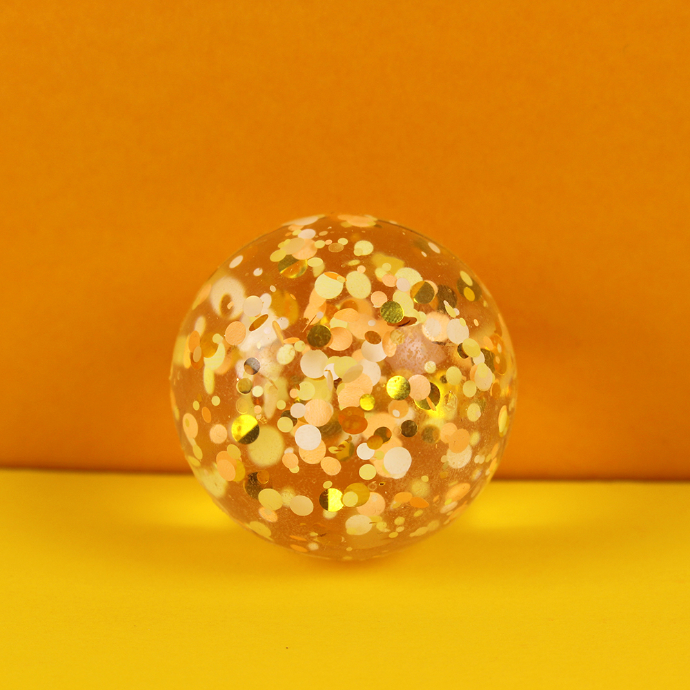 Flummi mit Konfetti, gold/zitronengelb/aprikot, 49mm