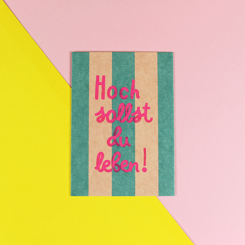 Postkarte Hoch sollst du Leben, petrol/rosa, Neon Pink