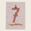 Postkarte Zahlen, flieder mit Kupferfolie – Zahl 7