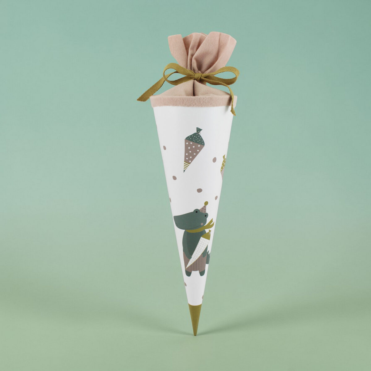 Stabile Schultüte in matter Optik und mit einem stabilen Filzverschluss in naturweiß (der auf der Abbildung gezeigte Filz in rose ist leider nicht mehr lieferbar)